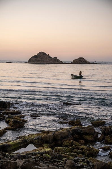 Mohamed, 56, grew up in Al Hoceima, a beachy port city in northern Morocco sitting between the Alboran Sea and the Rif Mountains. Mohamed’s childhood memories are those of long summers spent playing at the port, watching the fishermen haul in their catch and prepare them by the shore.