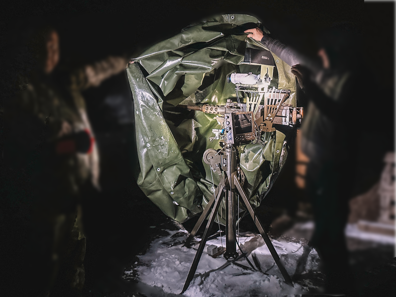 The judges settled on an old decommissioned ship. They brought in old furniture from their homes and set up monitors to watch for enemy targets entering the airspace. Above the vessel, they built makeshift structures with their own hands to mount three machine guns — the same guns they now use to shoot down Shahed drones.